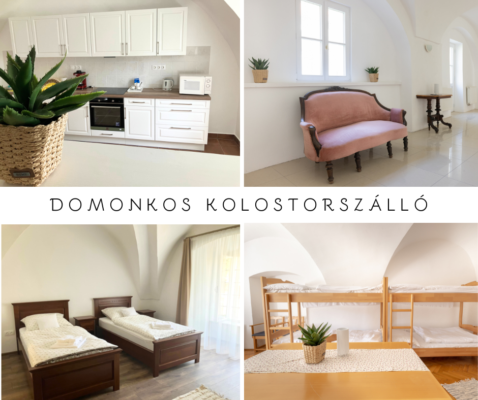 A Vasváron működő Domonkos Kolostor Apartmanok kényelmes szálláslehetőséget nyújtanak azon családok, baráti társaságok számára, akik közösen szeretnének megszállni, azonban mégis elszeparáltan. 6 szobával, egy jól felszerelt közös használatú konyhával és közösségi nagyteremmel kiválóan alkalmas születésnapok, családi ünnepek, közös táborozások, nyaralások lebonyolításához.